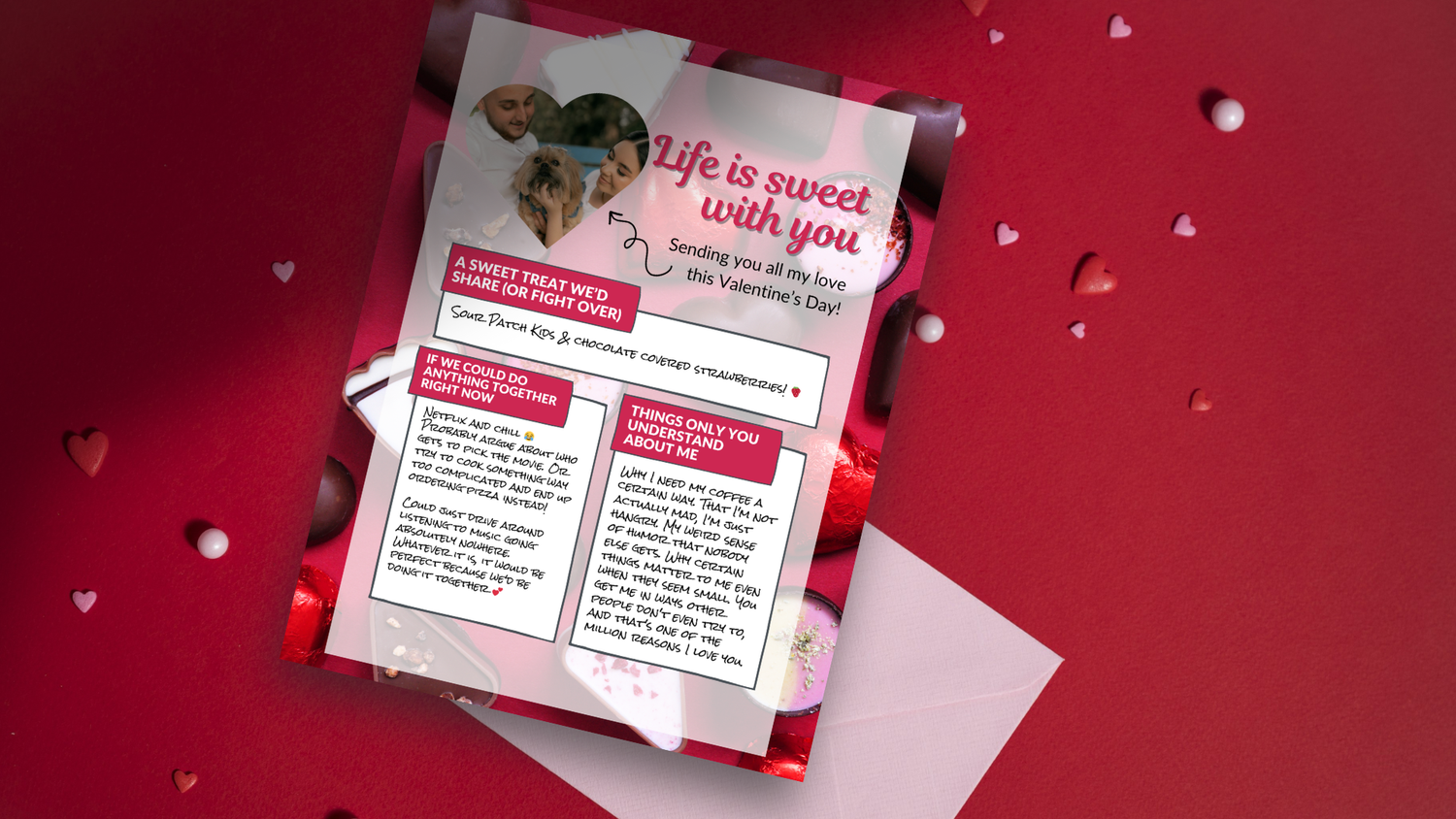Share sweet treats, inside jokes, and what makes your connection special with our newest activity letter. You fill in the prompts, they send theirs back, now you both have a keepsake that proves distance doesn't change what you mean to each other. 💕