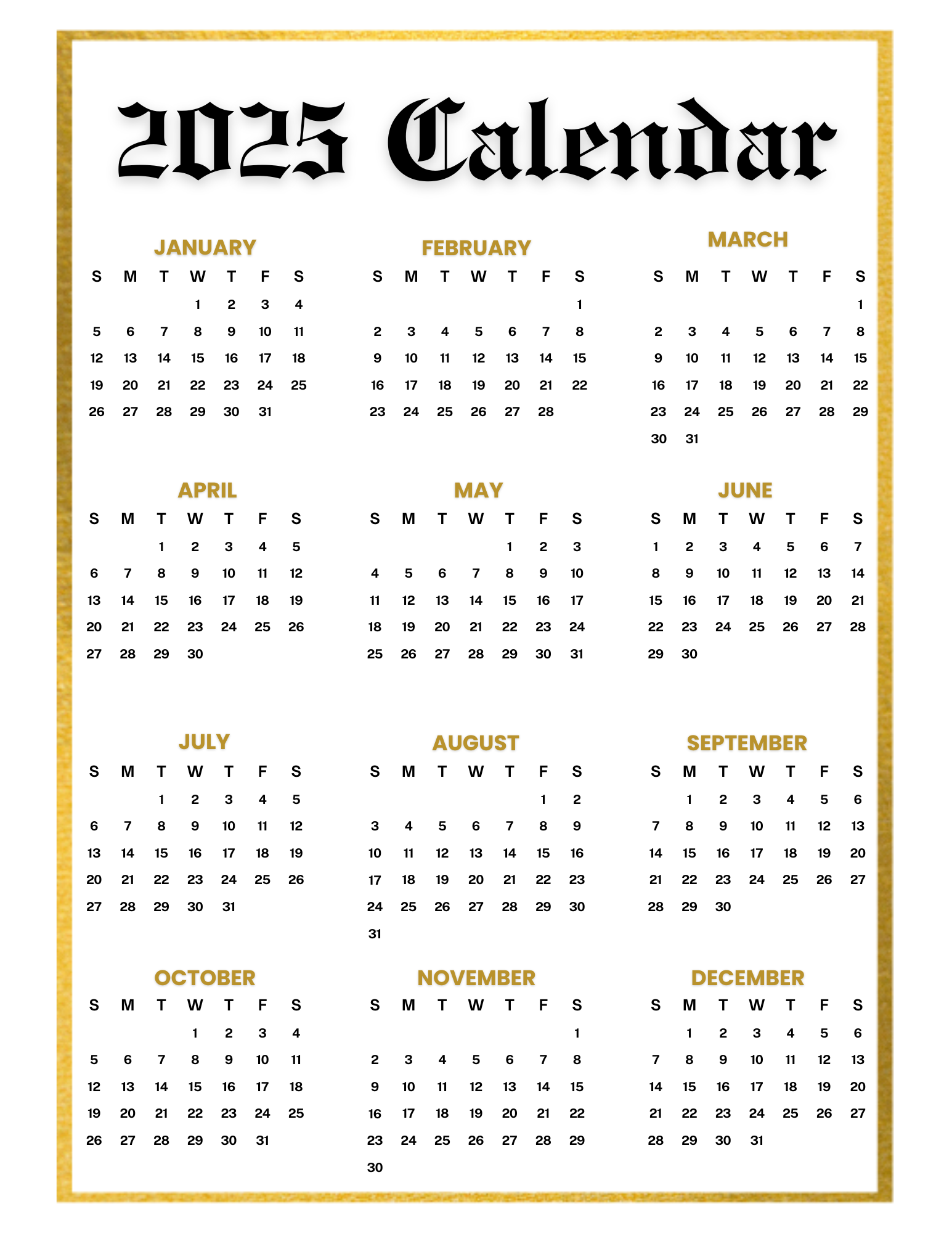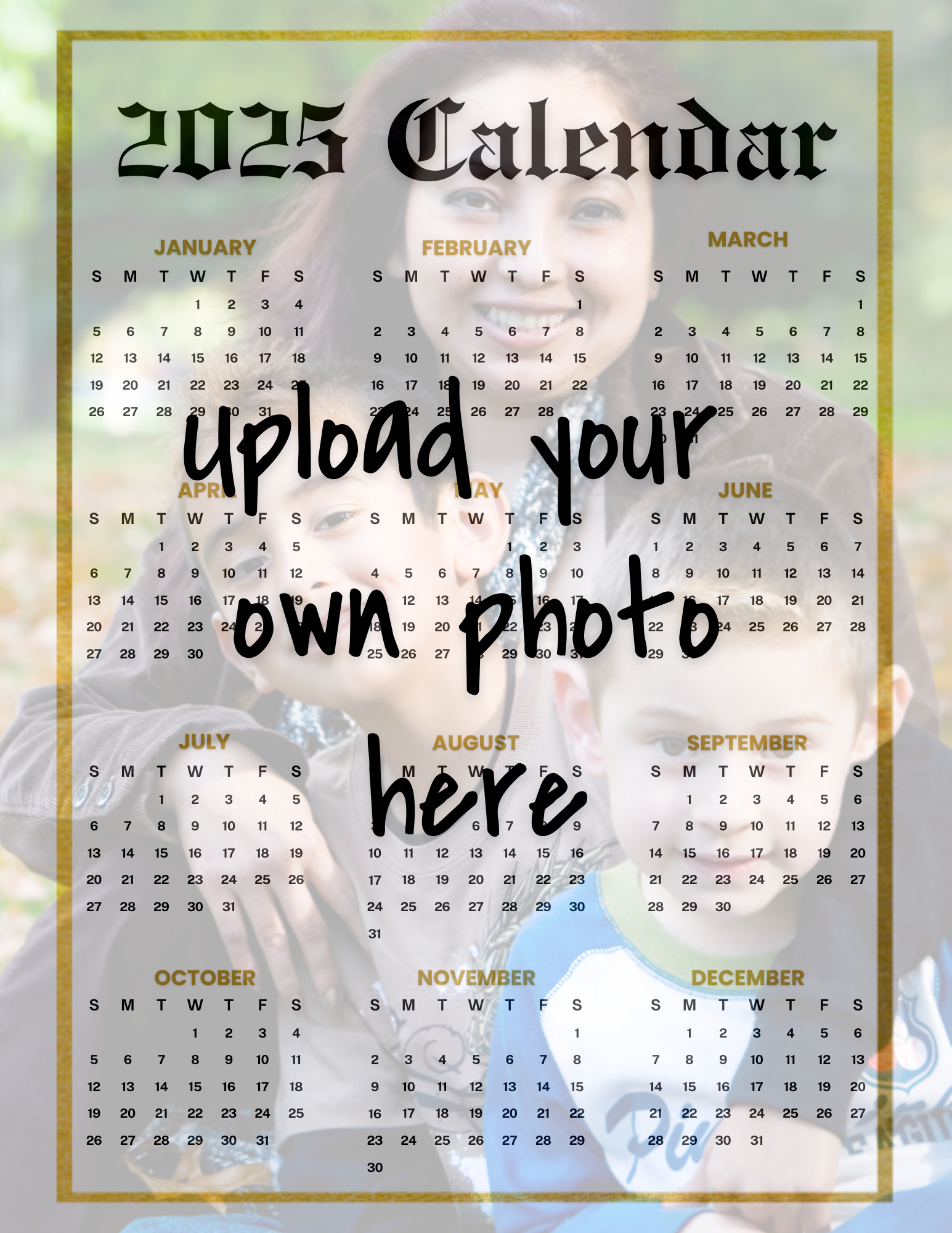 Custom 2025 Photo Calendar - Gold