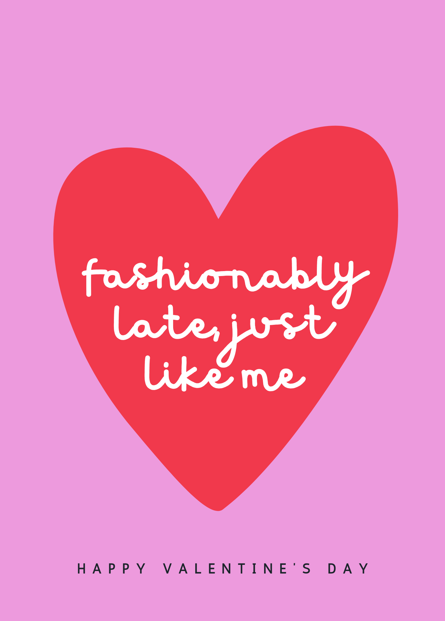Fashionably Late, Just Like Me | Belated Valentine's Day Card